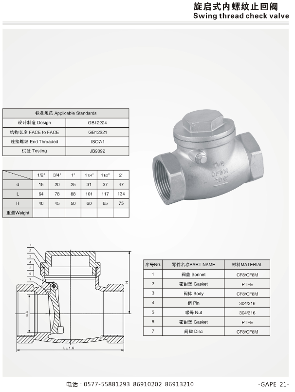 內螺紋止回閥